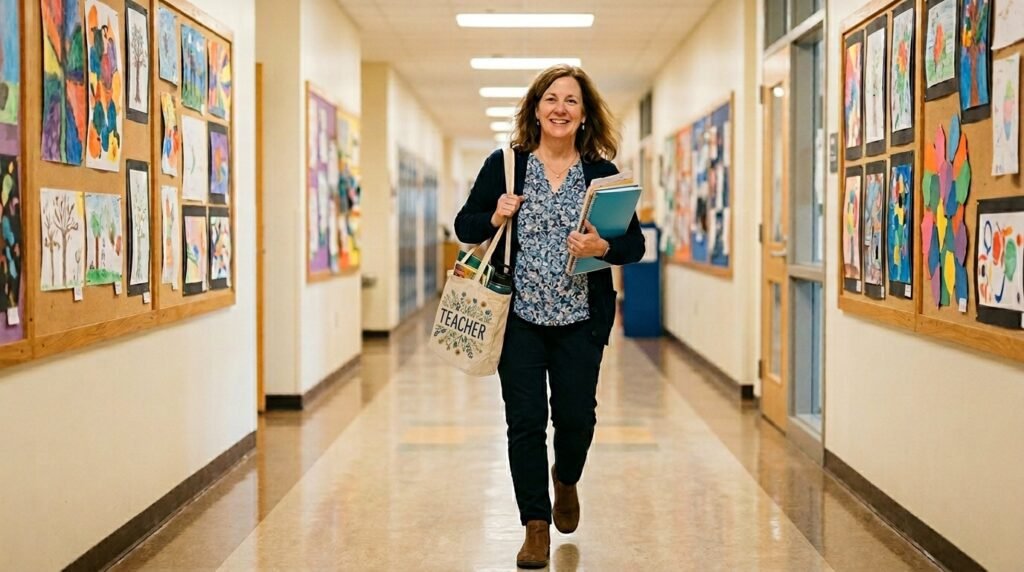 - Canvas Tote Bag – A roomy canvas tote with a teacher-themed print is one of those practical gifts teachers will actually use every single day. It works as a stylish carry-all for books, supplies, and everything in between.