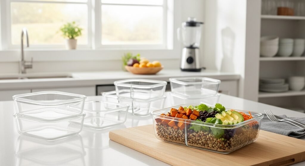 - Glass Food Storage Containers – A set of BPA-free glass containers with leak-proof lids, safe for freezer, microwave, and oven use.