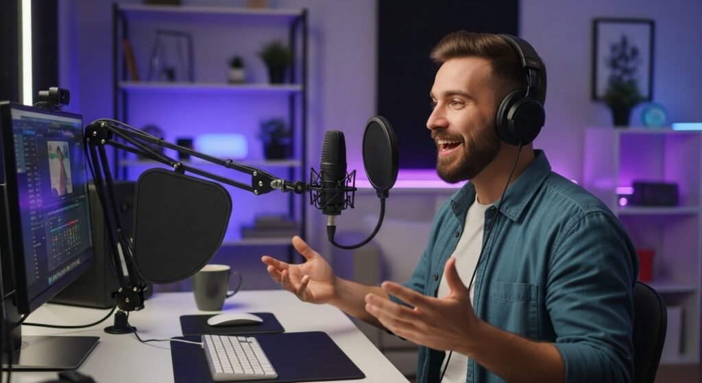 - USB Microphone – A versatile USB microphone offering high-quality audio for both podcasting and voiceovers