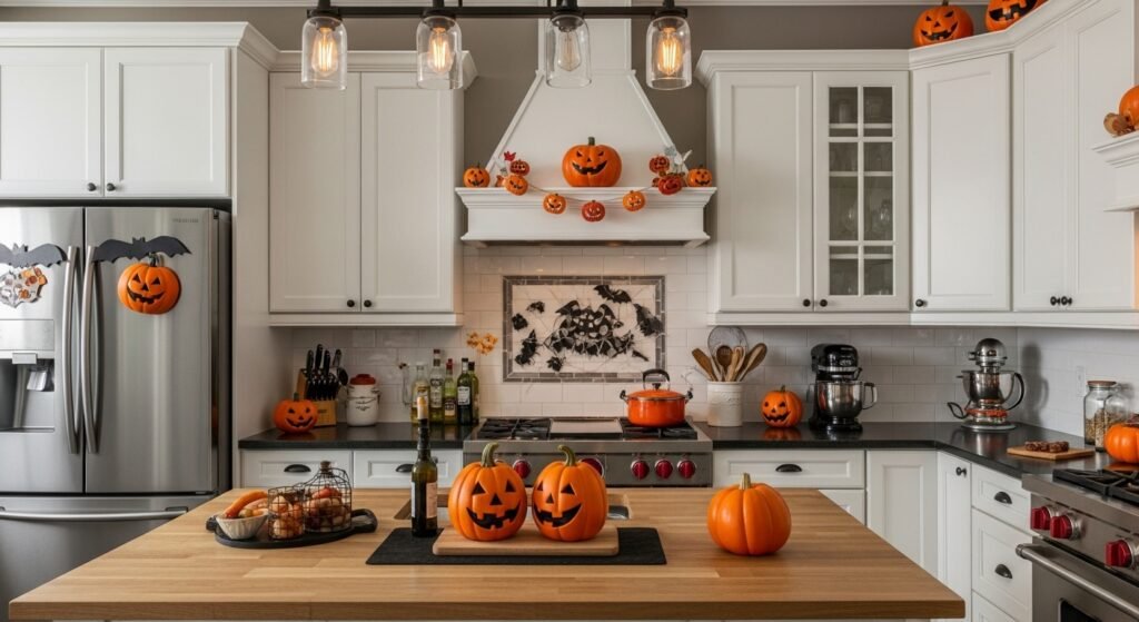 - Decorative Hand Soap Set (Spooky Soap Dispenser Set) – Ceramic pumpkin or ghost-shaped dispensers with matching trays bring festive charm to bathroom counters.