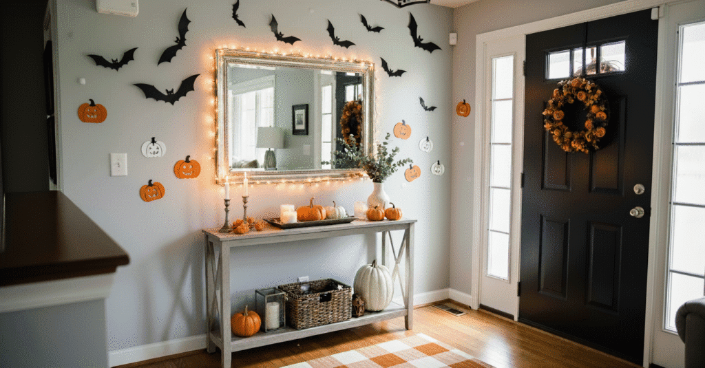 - Glowing Halloween String Lights – Battery-operated fairy lights shaped like ghosts or pumpkins add a whimsical, eerie glow to any bedroom space.